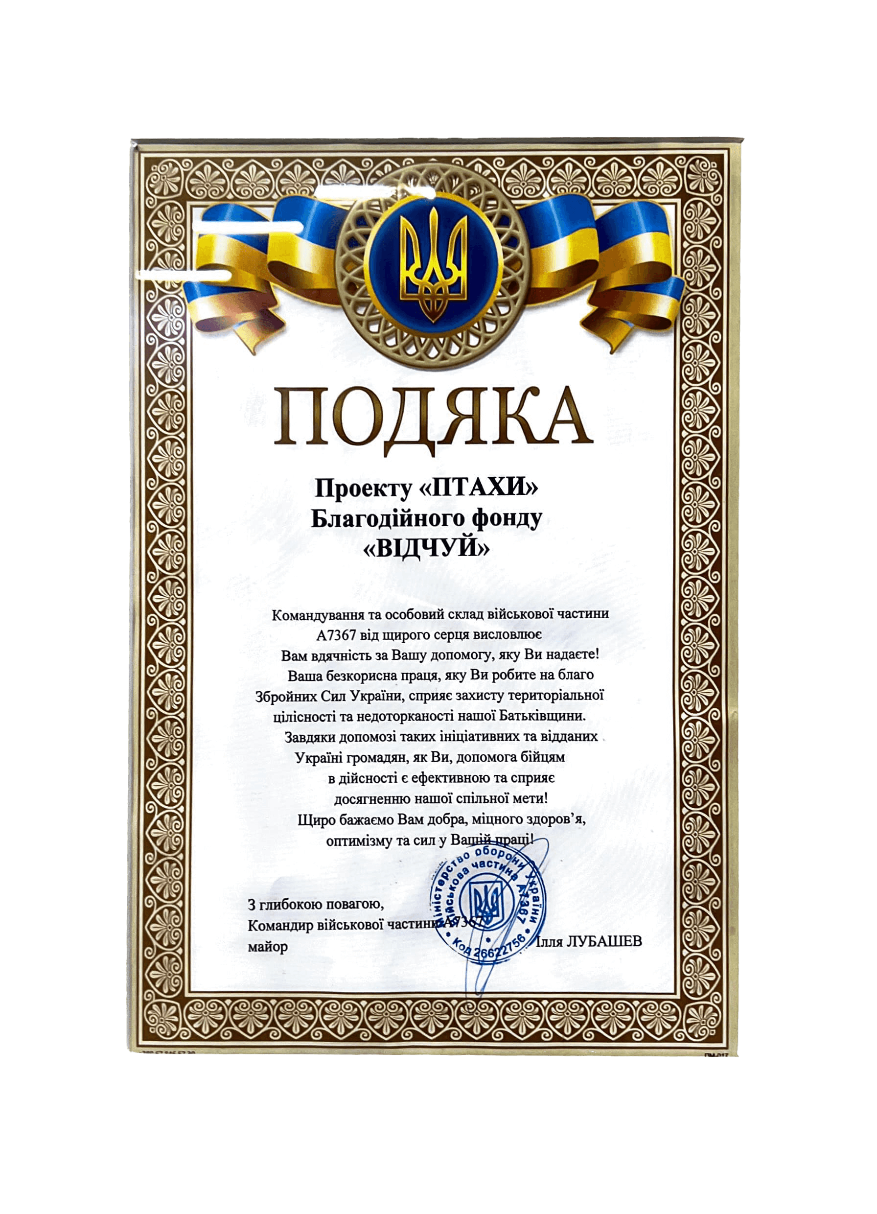 Вдячність від військової частини А7367